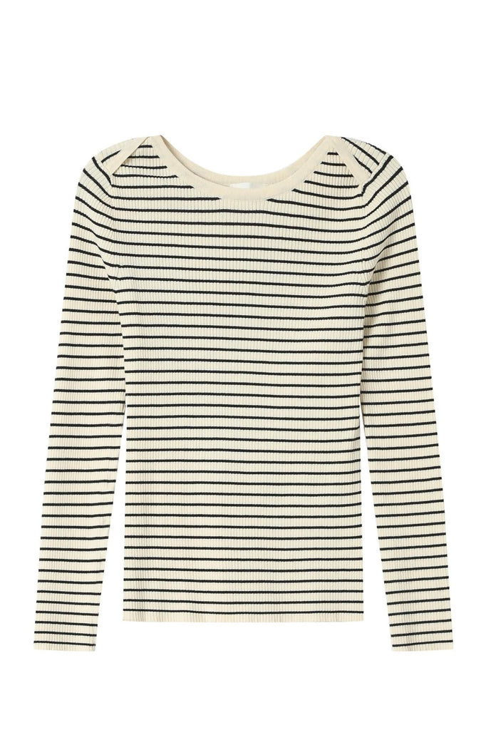 The SAMEDI long-sleeved jumper charms with its subtle elegance and nautical flair. Knitted in a fine ribbed stitch, it hugs the figure with its fitted cut. Timeless stripes and a boat neckline give it a chic, casual look. The SAMEDI striped jumper is a perfect addition to your everyday wardrobe.