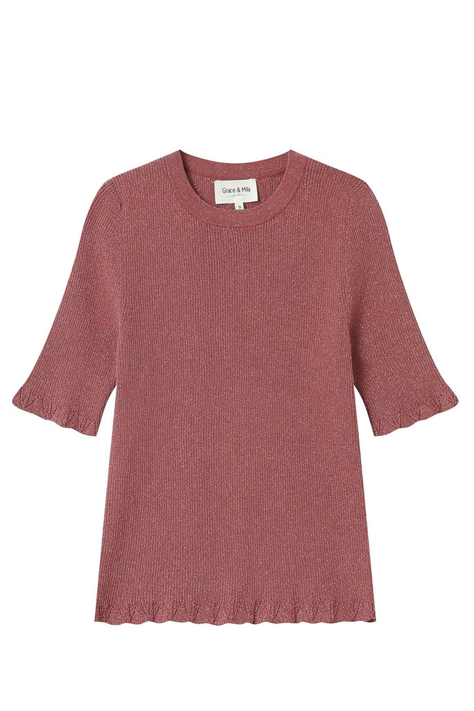 The SATURNE fine knit sweater, enhanced with a viscose and lurex blend yarn, is a timeless piece for all seasons. Its fine ribbed knit and slim fit offer a second-skin effect that flatters the feminine silhouette. Details such as the tubular crew neckline and the decorative finishes on the sleeve hems and bottom edge make the SATURNE short-sleeved sweater a refined and well-crafted piece.