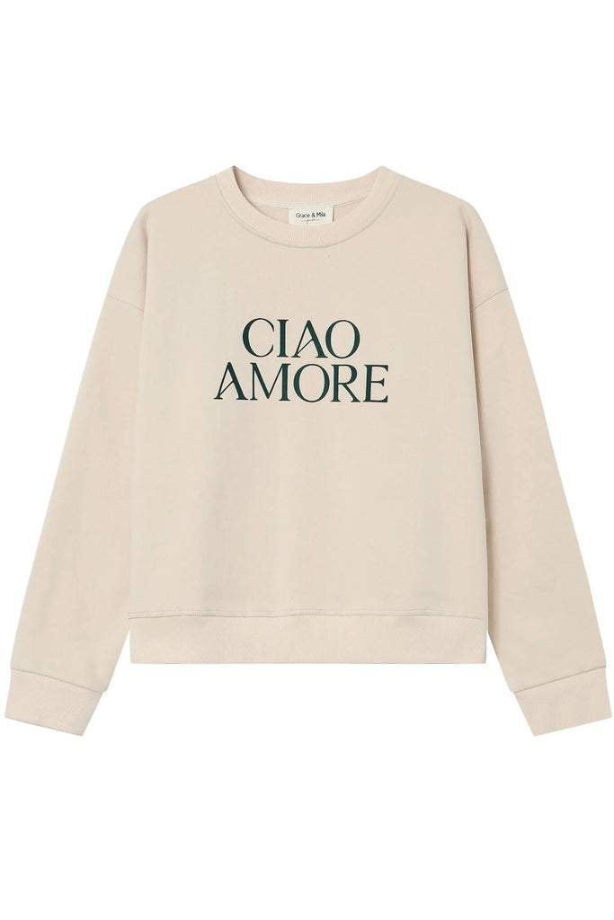 The SIGIL sweatshirt features the message "Ciao Amore" in velvety print across the chest. With its oversized fit, long sleeves, and dropped shoulders, it creates a relaxed silhouette. The SIGIL slogan sweatshirt has ribbed edges at the cuffs, neckline, and hem to bring structure to the look.
