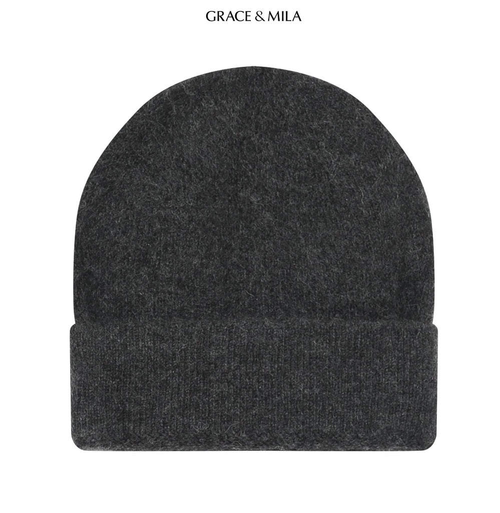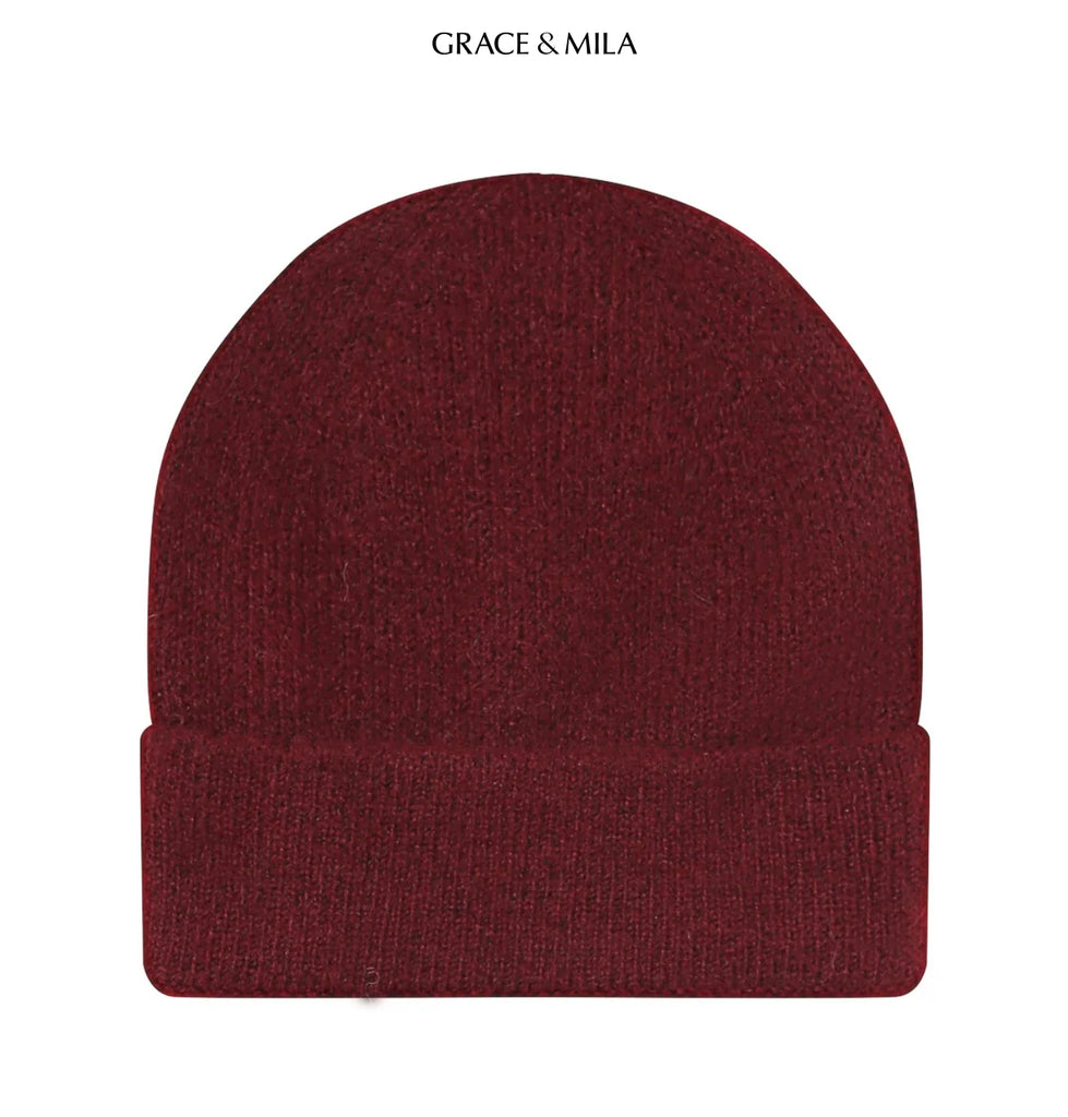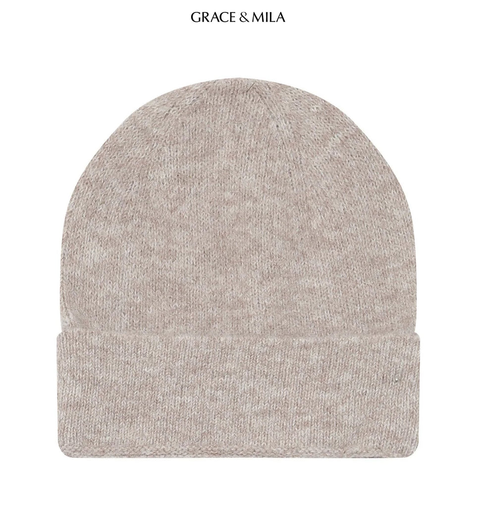 Jersey knit beanie - Wide turned-up hem - Decreasing stitch detail - One size fits all.